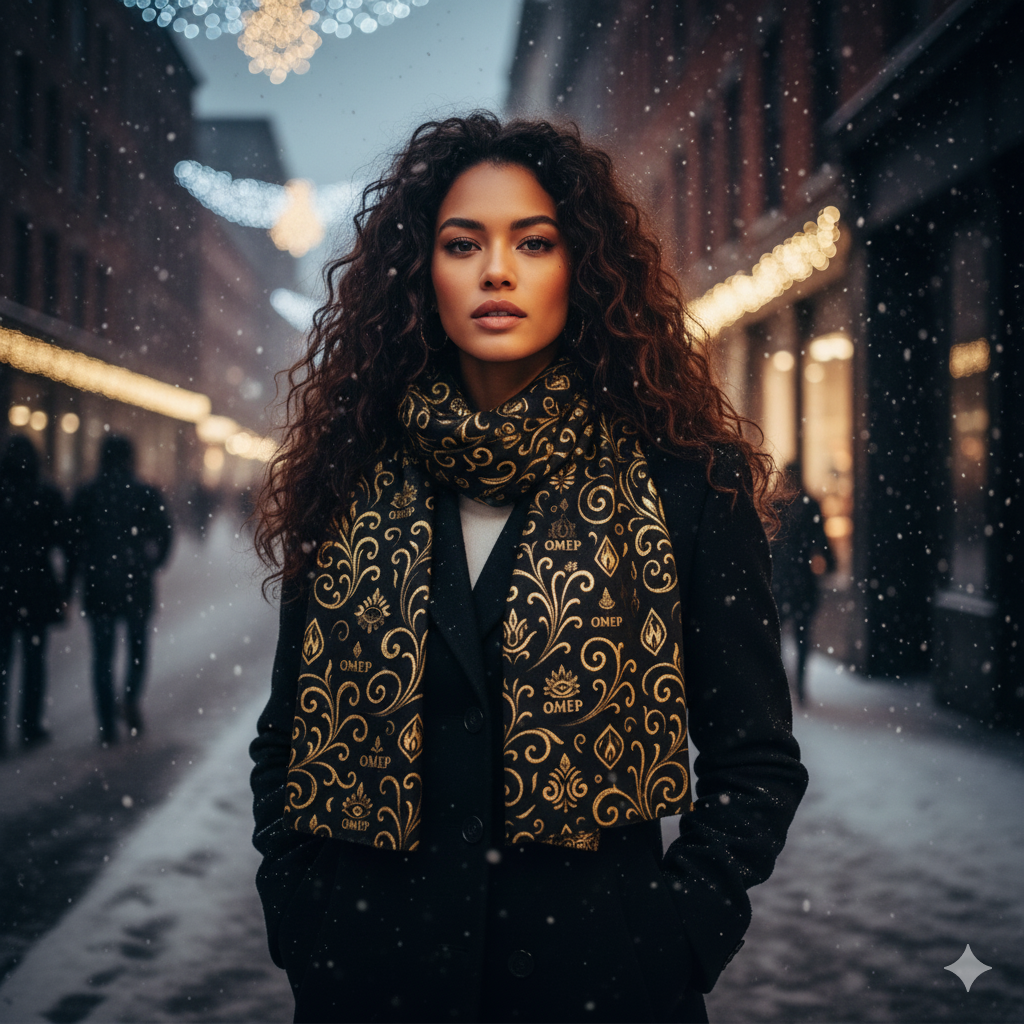 OMEP LUX Signature Scarf – Golden Filigree Edition