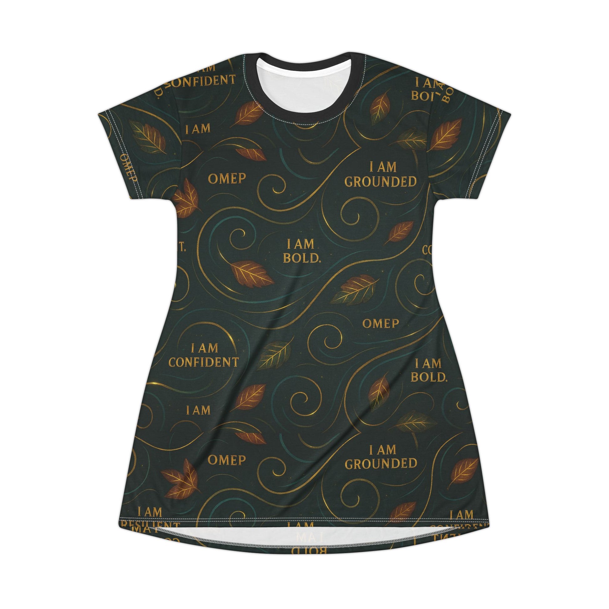 Carry empowerment with you wherever you go in the Affirmation Swirl — I AM Dress. This casual t-shirt dress features swirling autumn leaves woven with affirmations such as “I AM GROUNDED,” “I AM CONFIDENT,” and “I AM BOLD.” Designed for both comfort and style, it’s a versatile piece that transitions seamlessly from relaxed days to meaningful gatherings — making it a true fall statement of strength and self-love.