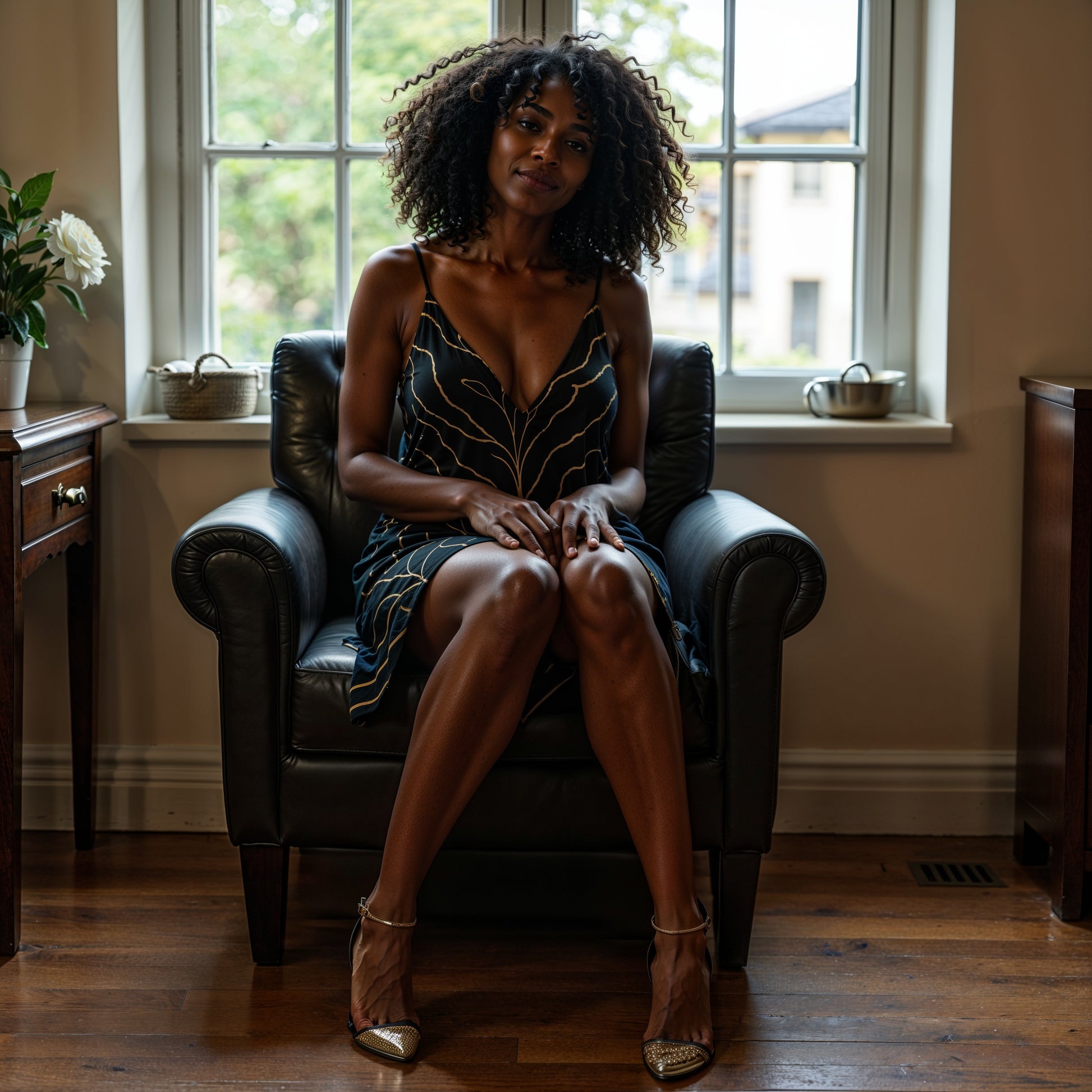 The Golden Vein Thread Casual Dress embodies subtle power. Flowing golden leaf patterns branch across a black base, symbolizing strength and connection to roots. With a relaxed yet chic silhouette, this piece transitions seamlessly from casual afternoons to evening gatherings, always carrying the Autumn Rises spirit.