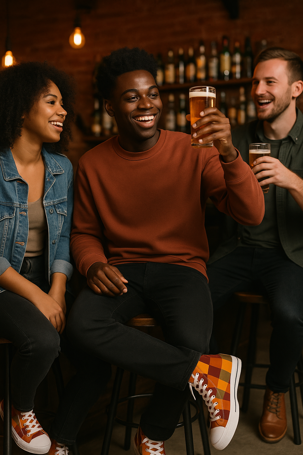 Step into seasonal style with the OMEP Autumn Plaid High-Tops. Featuring a bold plaid pattern in rich amber, burgundy, and olive tones, these sneakers bring cozy autumn energy to every step. The classic high-top silhouette pairs effortlessly with casual fits, making them perfect for crisp fall days, weekend outings, or laid-back streetwear looks. A footwear essential reimagined through the Autumn Falls Collection.