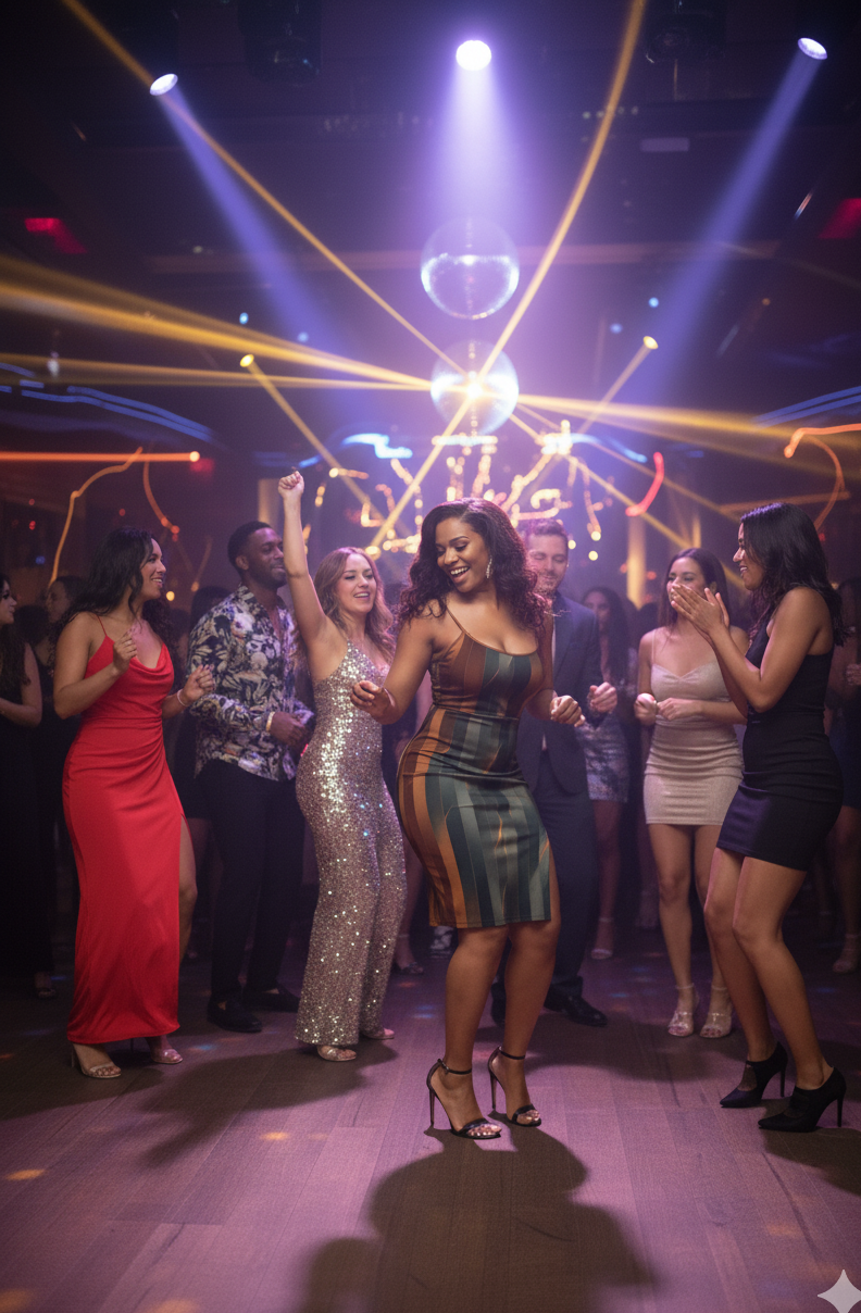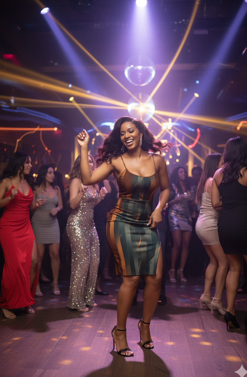 curve-hugging sunset tone dress