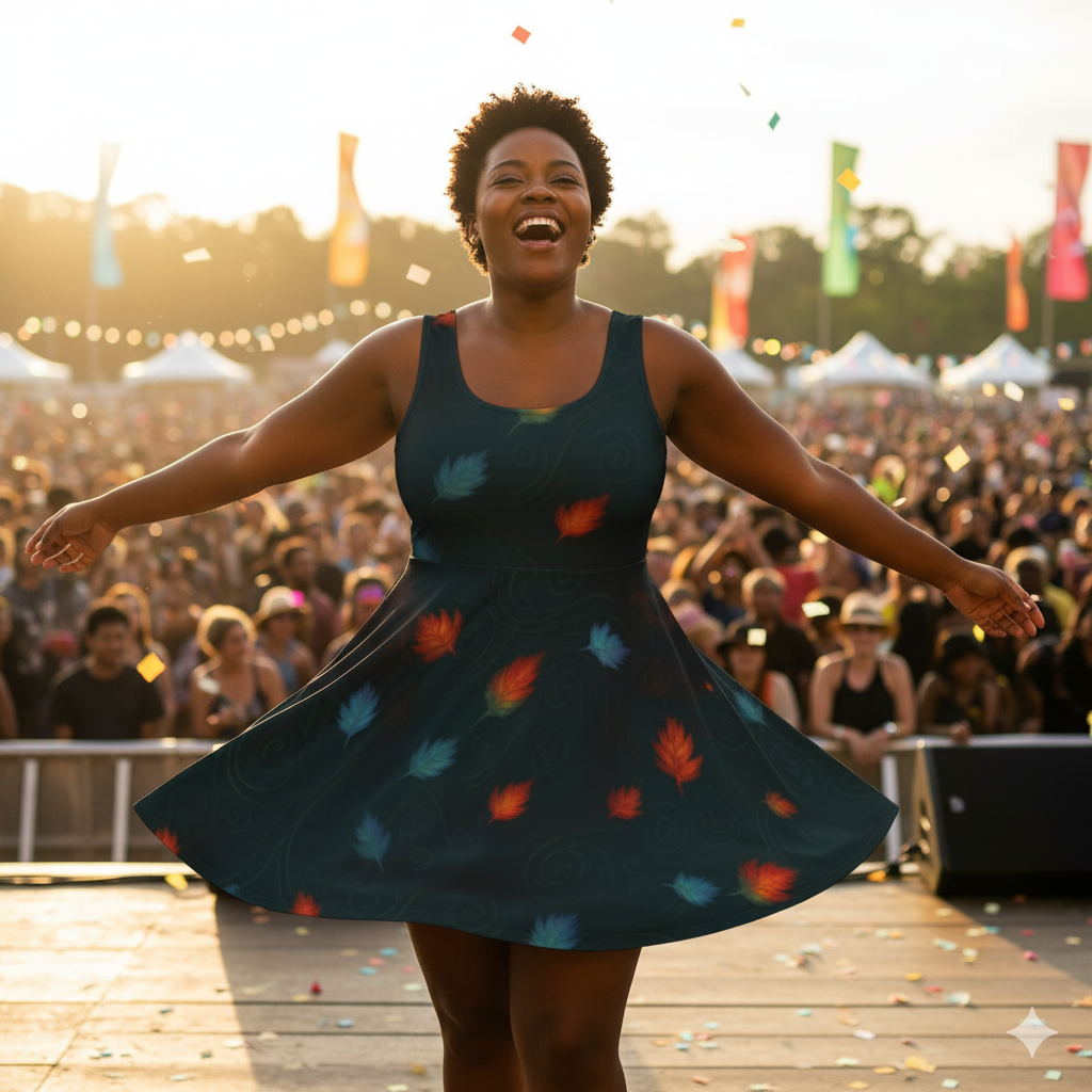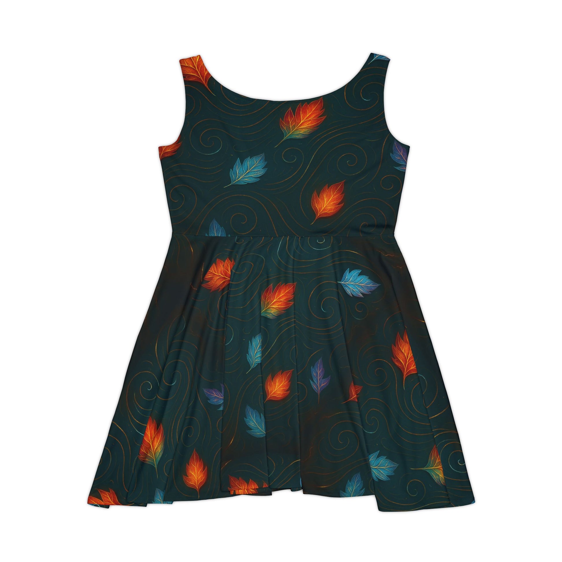 Step into autumn energy with the Swirl Leaves — Ember/Ice Dress. This skater-style dress showcases a striking balance of ember-glow leaves and icy blue accents swirling across a deep base. Designed for effortless movement and comfort, it radiates seasonal charm while remaining versatile for casual outings, festive gatherings, or elegant evenings. A polished fall statement piece that captures both warmth and contrast in one look.