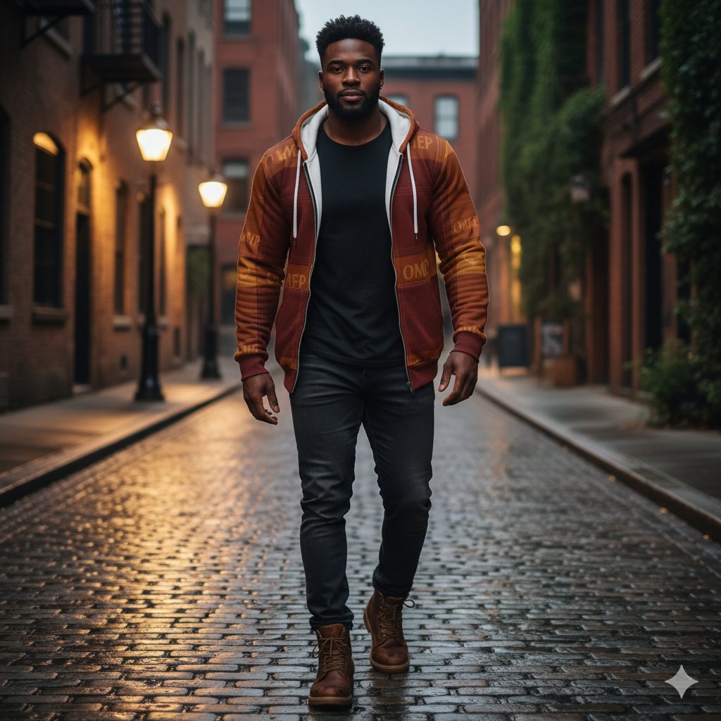 Wrap yourself in seasonal comfort with the OMEP Autumn Plaid Zip Hoodie. Featuring a bold plaid pattern in warm amber and burgundy tones, the design is interlaced with subtle OMEP branding for a polished finish. The full zip-up style and cozy hood make it perfect for layering on crisp fall days, casual outings, or relaxed evenings. A classic plaid reimagined for mindful autumn style.