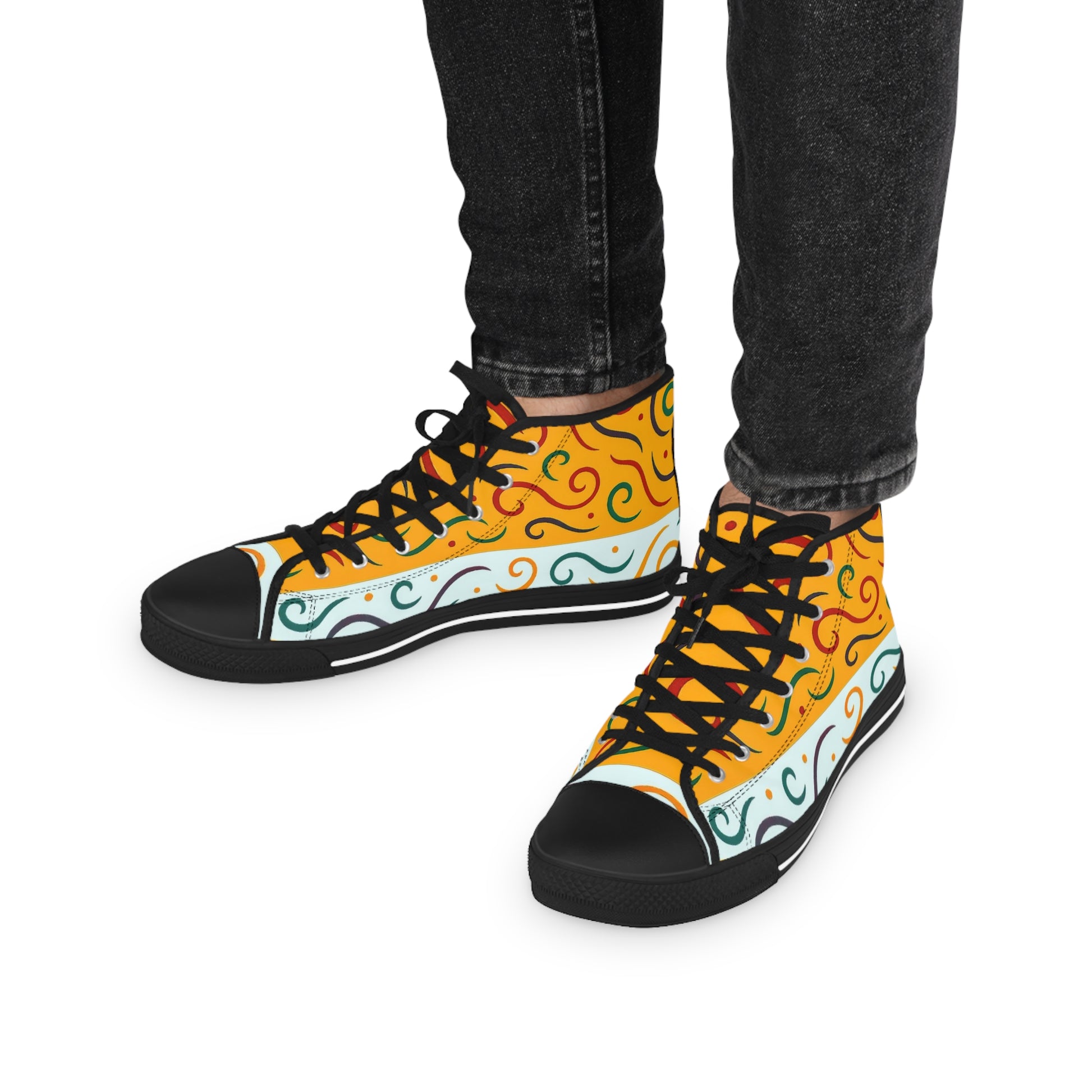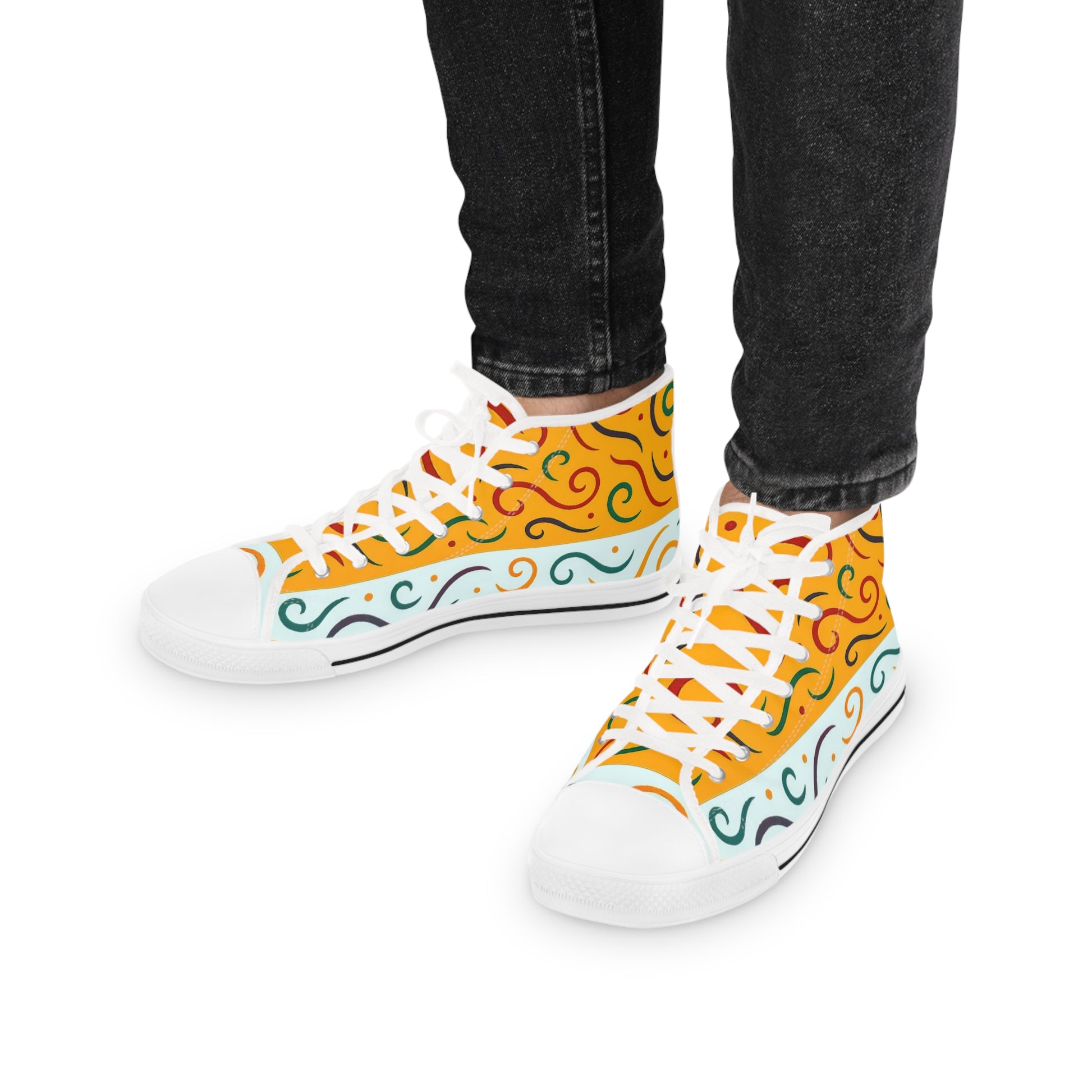 Introducing these vibrant Men's High Top Sneakers, designed to elevate your style with a splash of personality. Crafted from high-quality, breathable polyester canvas, these sneakers ensure all-day comfort with a soft and flexible fit. The unique full wraparound print adds a cheerful touch, making them perfect for casual outings or laid-back days at home. Great for trendsetters and those who love to express themselves through fashion, these sneakers are a must-have for young adults and anyone looking for a fun footwear option. Ideal for music festivals, casual gatherings, or just hanging out with friends, they add a fun vibe to any wardrobe. Perfect for gifting during holidays, such as birthdays, Christmas, or even summer celebrations!